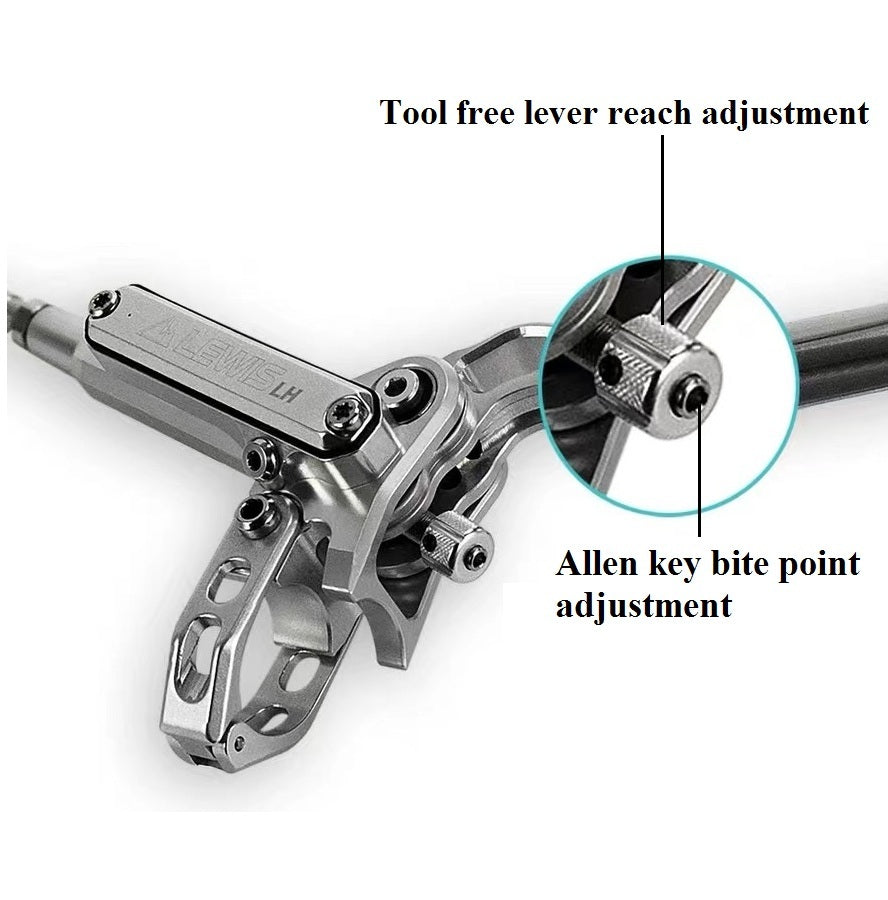 Lewis' patented technology for dual adjustment of lever reach & bite point allows you to customize the feel to your preference for superior performance out on the trails.